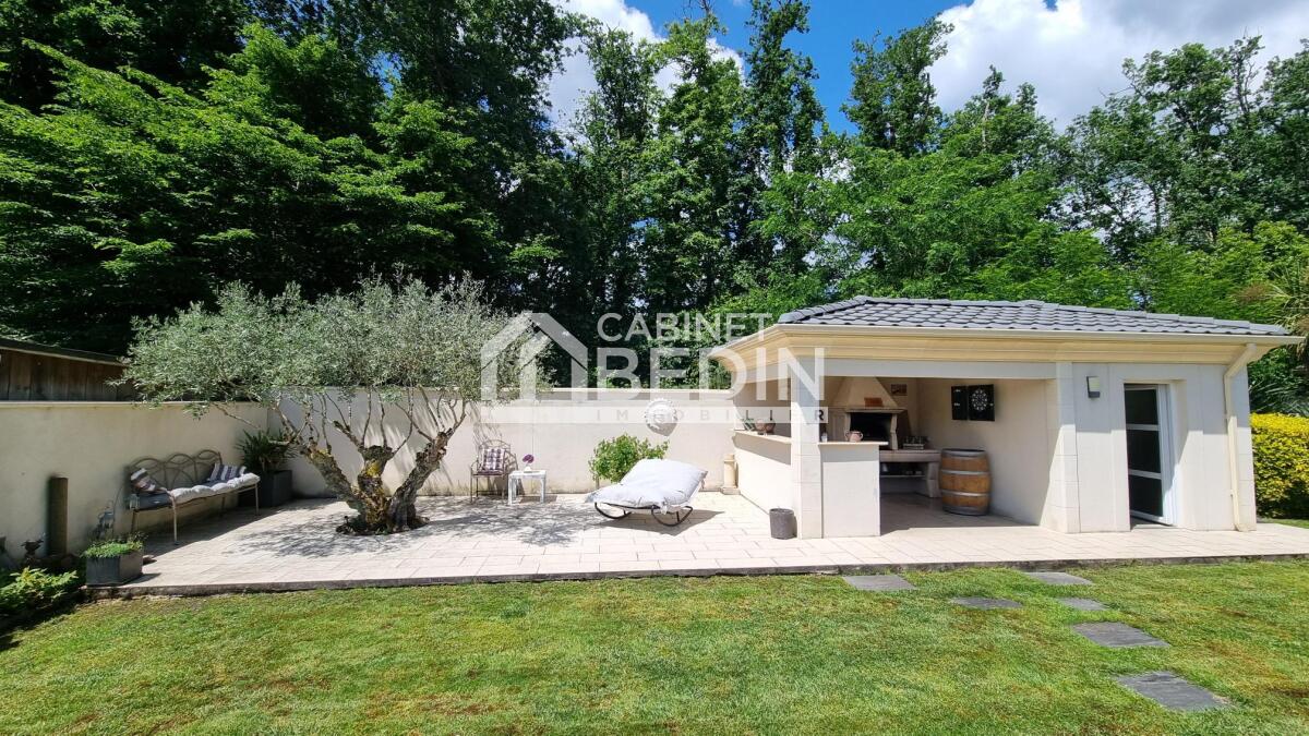 Nombreuses prestations (alarme avec télésurveillance, volets électriques, chauffage au sol, suite parentale, dépendances aménagées dont une cuisine d'été, arrosage automatique et jardin paysagé). Finitions haut de gamme. 5 chambres (Parties nuit séparées de chaque côté de la maison), 1 grand séjour/salle à manger lumineux, 1 bureau, 2 salles de bain et 2 toilettes, cuisine équipée.