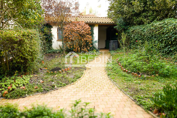 Immeuble à Pessac hyper centre avec maison 88 m² et local commercial loué, jardin et garage.