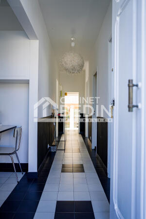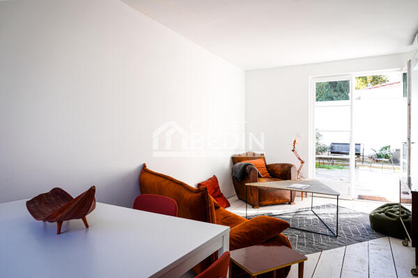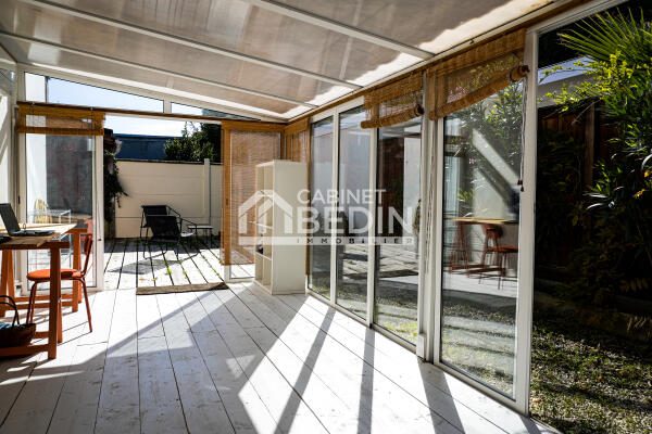 Dès l’entrée, un couloir en carreaux noir et blanc, dans l’esprit des anciennes échoppes bordelaises, vous guide vers trois chambres lumineuses au parquet en bois brut, et une véranda de 18 m² baignée de lumière naturelle, idéale pour un espace télétravail, un atelier d’artiste ou un salon d’hiver.