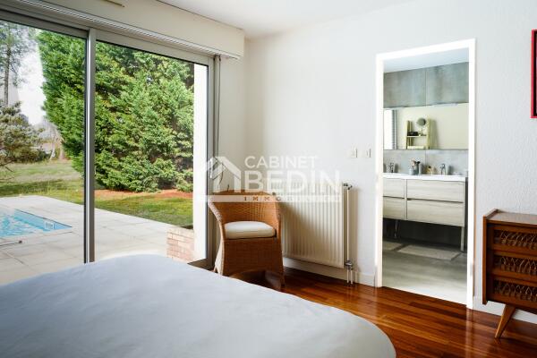 Découvrez cette villa d’exception plongée dans un écrin de verdure de 120 hectares de pinèdes, plans d’eau et bosquets du prestigieux golf de Pessac. Cette maison d’architecte de 203 m² allie élégance contemporaine et cadre de vie apaisant.