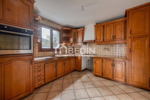 En exclusivité au Cabinet Bedin, Cette annonce immobilière correspond à des personnes en recherche maison Pessac. Ce bien immobilier propose une surface de 104 m². Cette maison construite sur un terrain de 560 m² dispose de 3 chambres. Dans le détail, cette Maison comprend les pièces ou éléments suivants: debarras de 6.9 m² , chambre de 13.5 m² , chambre de 9.8 m² , suite parentale de 16.0 m² , dégagement de 12.5 m² , cuisine aménagée de 9.9 m² , cuisine d'été de 5.0 m² , garage de 13.0 m² , salle de bain de 5.8 m² , salle a manger sejour de 26.0 m² , toilettes de 1.2 m²