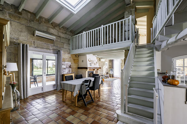 Dans un secteur calme et privilégié, à 5 minutes de Saint André de Cubzac, cette maison familiale en pierre rénovée offre un chaleureux salon/séjour avec cheminée et une grande véranda lumineuse pour accueillir vos convives. La cuisine aménagée s'accompagne d'une arrière-cuisine pratique avec un espace buanderie, d'une salle de bains, d'un coin douche et de trois chambres confortables. Attenant à la maison, un grand garage. Le terrain piscinable clos et arboré, sans vis-à-vis, est agrémenté de plusieurs dépendances et d'un parking pour camping-car. Visite virtuelle.