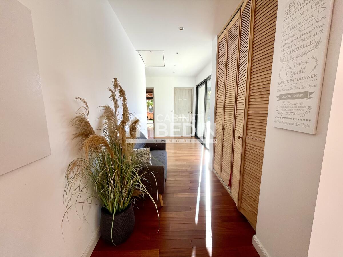 À l’extérieur, vous profiterez d’un environnement exceptionnel avec une piscine, un jacuzzi et un terrain de pétanque, intégrés dans un écrin de verdure parfaitement entretenu. L’ensemble crée un lieu unique dédié à la détente, au bien-être et à la convivialité. Un garage complète ce bien rare aux prestations haut de gamme.