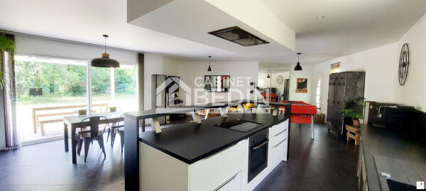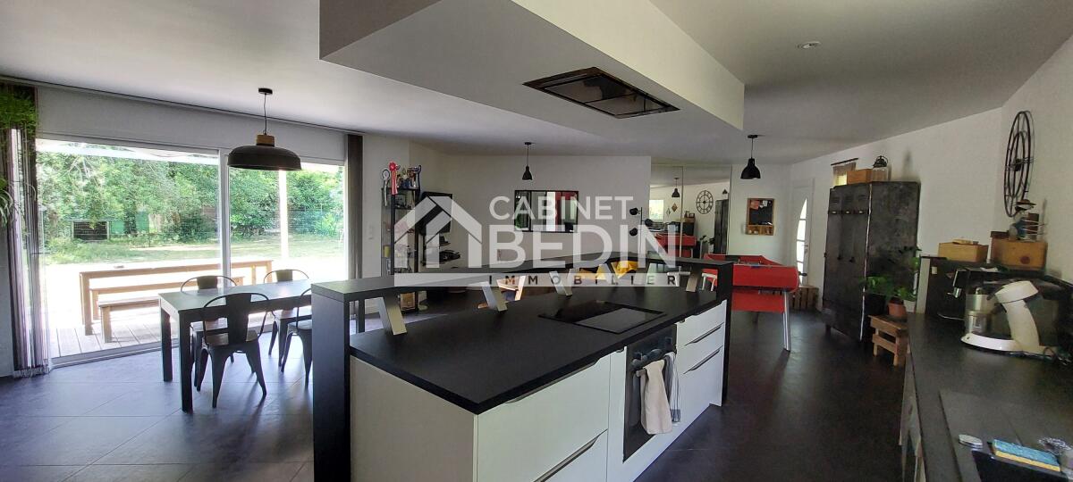 SALLES : A découvrir au fond d'une impasse , dans un environnement verdoyant, cette maison contemporaine de 2019 offrant de beaux volumes et une excellente luminosité.
