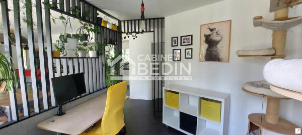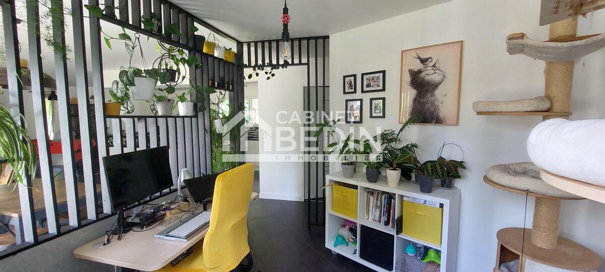 Un séjour, salon, cuisine aménagée et équipée moderne et fonctionnelle, une suite parentale avec salle d'eau privative et dressing, deux chambres supplémentaires, un bureau idéal télétravail, salle d'eau indépendante, un cellier et wc séparé.