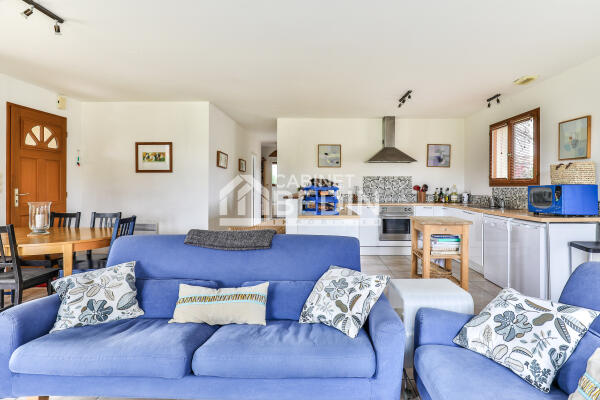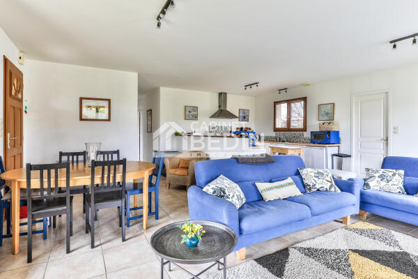 La maison se compose d’un spacieux séjour/salon convivial, ouvert sur une cuisine moderne, aménagée et entièrement équipée. L’espace nuit comprend quatre chambres, dont une parentale avec placards, offrant confort et intimité.