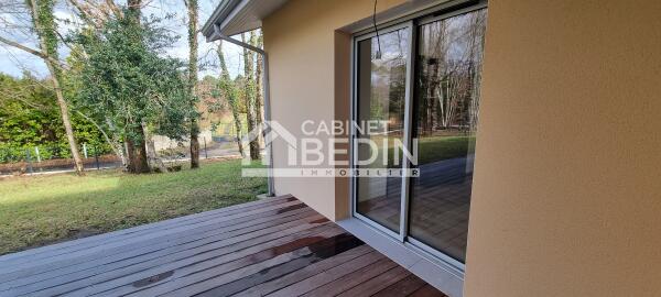 A vendre Sanguinet- Maison neuve avec deux chambres + une suite parentale sur un terrain d'environ 685 m², une une belle pièce de vie, un cellier, deux wc, une salle de bains, une salle d'eau, une terrasse et un garage attenant. Normes RE 2020. Frais de notaires réduits.