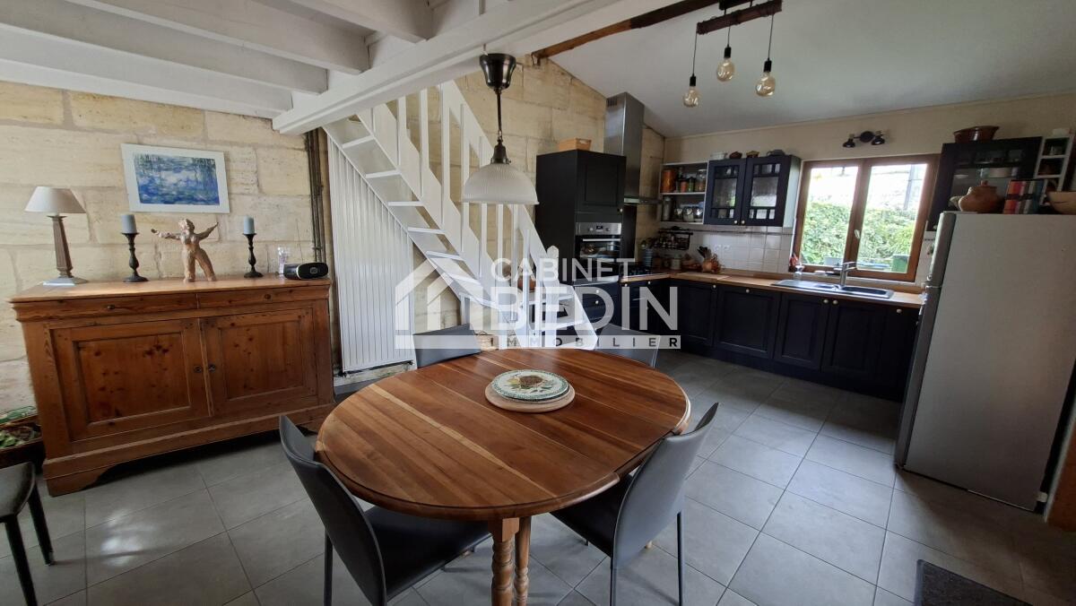 Dans un quartier agréable de Saint André de Cubzac, venez découvrir cette charmante demeure en pierre, du début du XXème siècle, parfaitement entretenue, et comprenant une belle entrée, un grand salon lumineux avec poêle à bois et une spacieuse cuisine moderne, dotée d'une cheminée, ouvrant sur une jolie terrasse pavée. Deux chambres en rez-de-chaussée, deux autres à l'étage ainsi qu'un espace bureau, une buanderie et une salle de bains complètent ce bien. En extérieur, une dépendance pour bricoler, un garage à vélos ainsi qu'un car-port tout neuf vous assurent stockage et rangement en tout genre. Venez vite découvrir tout le bien-être que propose cette charmante maison.