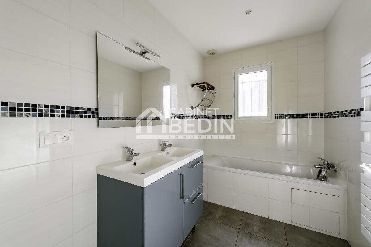 Maison moderne à vendre à Saint-André-de-Cubzac, offrant 3 chambres, une salle de bains spacieuse, une pièce de vie lumineuse avec cuisine ouverte. Le jardin clos de 505 m² invite à la détente et permet un projet piscine. Chauffage au sol par pompe à chaleur, garage et parking complètent ce bien. Idéal pour un achat immobilier à Saint-André-de-Cubzac, ce logement récent allie confort et praticité. Cabinet Bedin Immobilier vous accompagne dans votre projet.