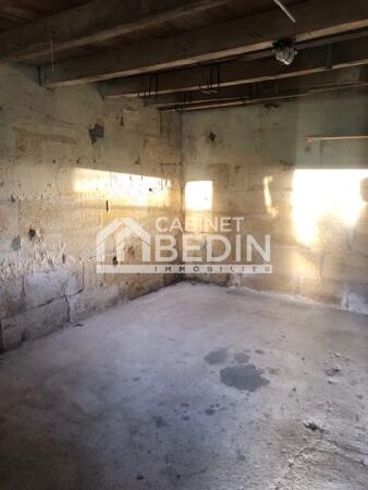 Maison en pierre dans le centre de Saint Médard de Guizières comprenant entrée, cuisine, salon, salle à manger, WC séparé. A l'étage: 3 chambres, salle de bains avec WC dégagement. Jardin. 2 dépendances.