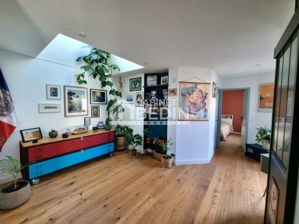 Avec ses volumes généreux, sa cuisine ouverte sur le séjour et sa pièce de vie lumineuse de part sa double exposition.