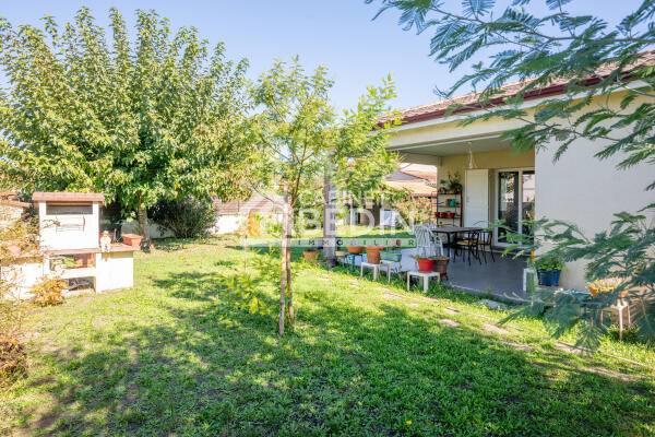 Sur une belle parcelle de 809 m², cette maison familiale s'organise autour d'un vaste séjour lumineux s'ouvrant sur un jardin paysager et une terrasse couverte, idéale pour les repas en extérieur. La cuisine est entièrement équipée.