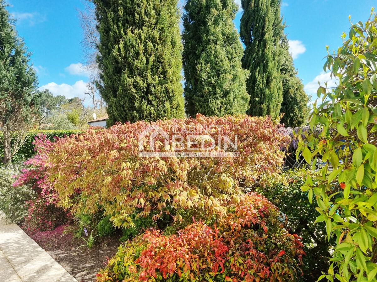 Le terrain de plus de 800 m² est entièrement paysagé, offrant un cadre de vie calme, verdoyant et recherché sur le secteur de Saint-Médard-en-Jalles.