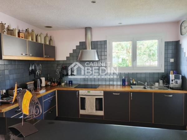 Mandat "Partenaire" du Cabinet Bedin, Cette annonce immobilière correspond à des personnes en recherche maison St Medard En Jalles. Ce bien immobilier propose une surface de 115 m². Cette maison construite sur un terrain de 810 m² dispose de 3 chambres. Dans le détail, cette Maison comprend les pièces ou éléments suivants: coin travail de 9.1 m² , abri jardin de 8.0 m² , debarras de 5.3 m² , chambre de 8.1 m² , chambre de 9.2 m² , chambre de 13.3 m² , cuisine de 12.4 m² , couloir de 2.5 m² , entree de 5.0 m² , garage de 20.0 m² , piscine de m² , salle de bain de 4.8 m² , salon sejour de 42.0 m² , toilettes de 1.9 m²