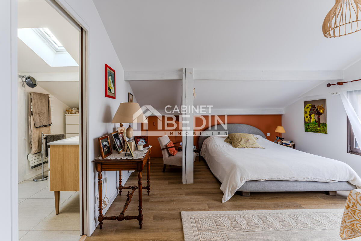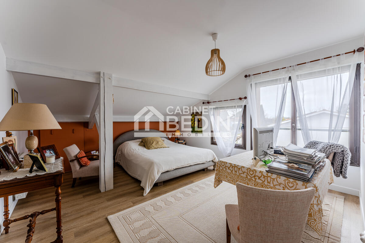 Elle se compose de 5 chambres dont une suite et 4 chambres de plain-pied, parfaites pour accueillir une grande famille, aménager un bureau ou une chambre d'amis. Les espaces de vie sont lumineux et fonctionnels, pensés pour le confort du quotidien comme pour les moments de convivialité.