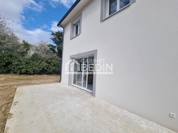 Maison neuve T4 en duplex très lumineuse, composée d'une grande entrée, un séjour avec cuisine ouverte donnant sur un jardin avec une terrasse exposé Sud-Ouest, un cellier, un wc, une salle d'eau et à l'étage trois chambres avec rangements, une salle de bains, un wc. Garage et place midi. Basse consommation grâce à la pompe à chaleur réversible. Plafonds de revenus soumis PINEL.