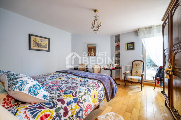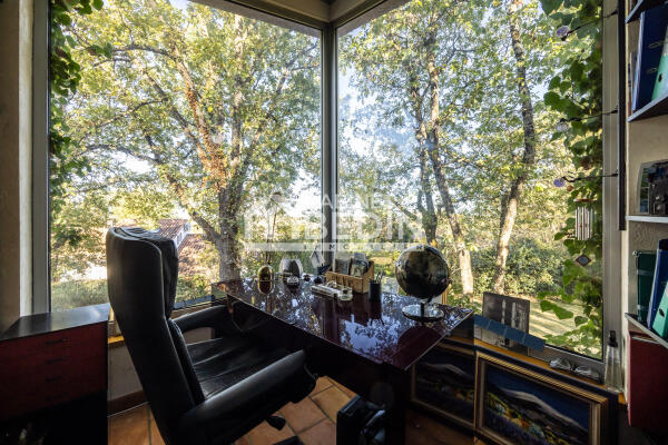Très rare sur le cœur de ville de Saint-Orens, nichée sur un beau terrain plat et arboré de chênes d'une superficie de plus de 1500 m², venez découvrir cette maison d'inspiration anglaise de plus de 170m² se composant de 5 chambres, dont une suite parentale en rez-de-chaussée, un séjour, une salle à manger, une cuisine, un espace détente au coin du feu et un espace bureau.