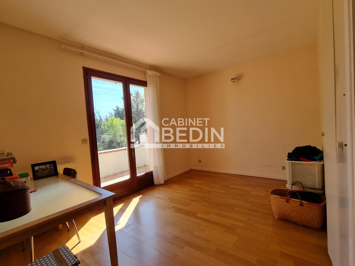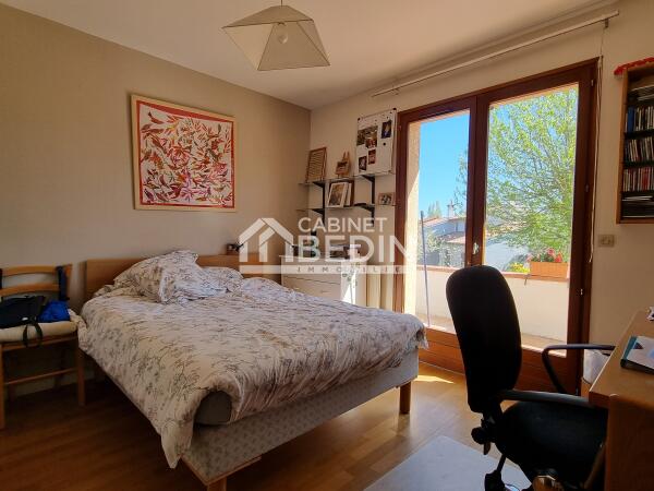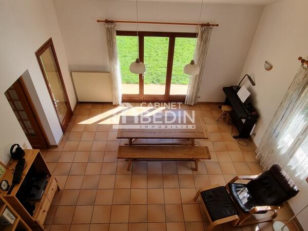 - Trois chambres dont deux avec accès à un balcon surplombant le jardin, mezzanine et salle de bains avec WC.