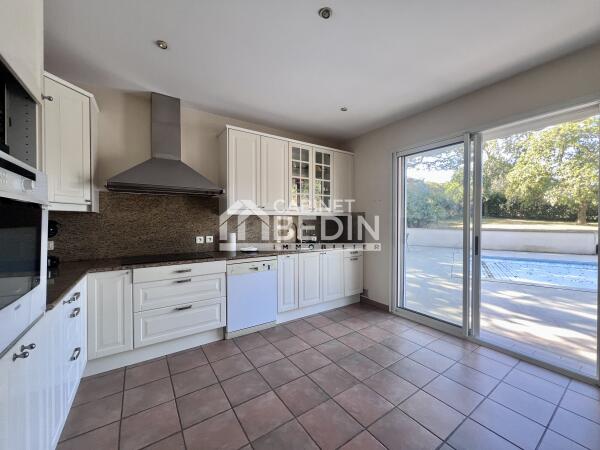 Située dans l’un des environnements les plus prisés de Bordeaux, cette élégante propriété de plain-pied offre un cadre de vie unique, alliant confort et sérénité. Dès l’entrée, une vaste pièce de vie baignée de lumière s’ouvre sur une superbe terrasse et une grande piscine, au cœur d’un jardin paysager et bucolique de plus de 3 000 m². La cuisine, indépendante et fonctionnelle, bénéficie également d’un accès direct sur l’extérieur.