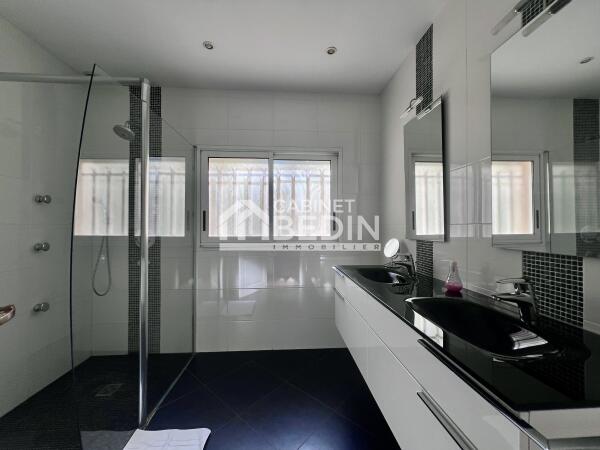 L’espace nuit se compose de six spacieuses chambres, dont une suite parentale avec salle de bains privative et grand dressing. Une salle d’eau supplémentaire complète cet ensemble harmonieux.
