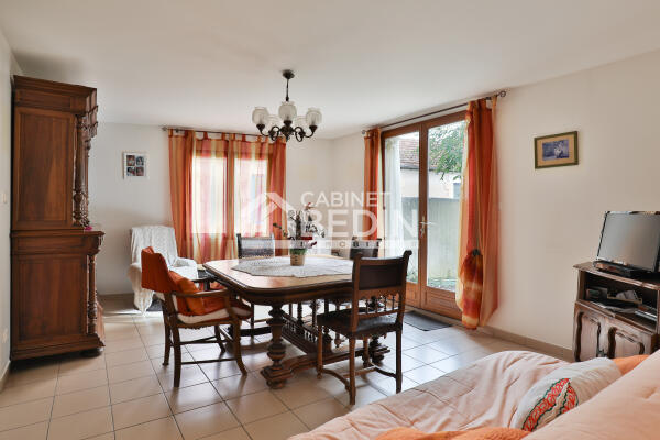 Une grande pièce de vie lumineuse, idéale pour les repas en famille,