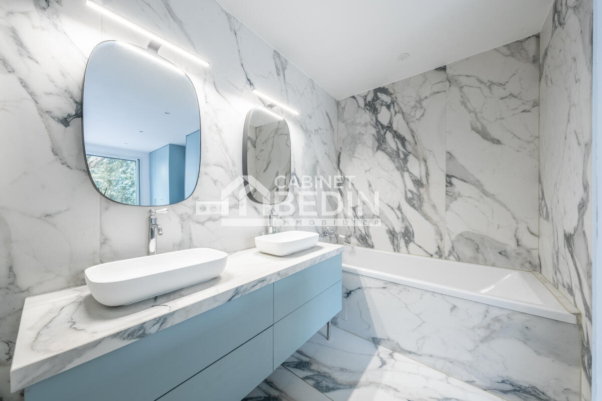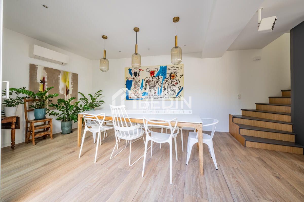 Dès l'entrée, vous apprécierez la luminosité traversante, mise en valeur par de grandes baies vitrées de 8m de haut ouvrant sur un jardin /terrasse végétalisé de 60 m2.
