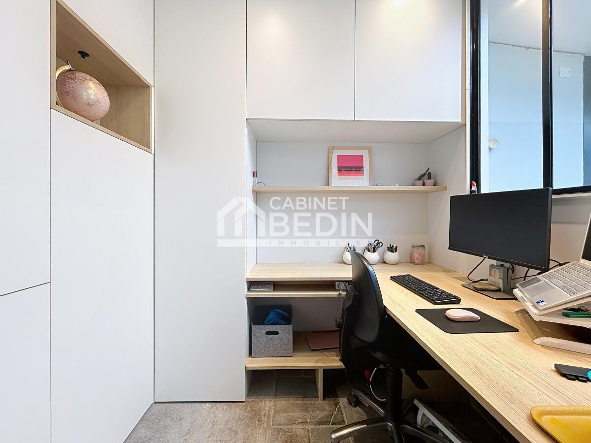 Elle se compose au rez-de-chaussée d'une belle pièce de vie avec une cuisine ouverte, d'un espace salon de saison donnant accès au jardin, d'un coin bureau, d'une buanderie et d'une suite parentale avec salle d'eau haut de gamme et dressing.