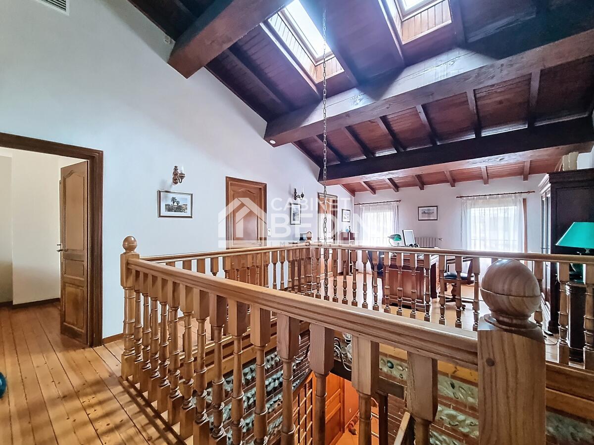 Une grande pièce de vie vous accueille au rez de chaussée et s'ouvre sur un jardin arboré avec piscine.