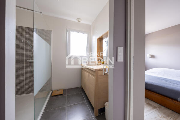 Le rez-de-chaussée offre une confortable suite parentale ainsi qu’une buanderie fonctionnelle, apportant un véritable confort de vie au quotidien.