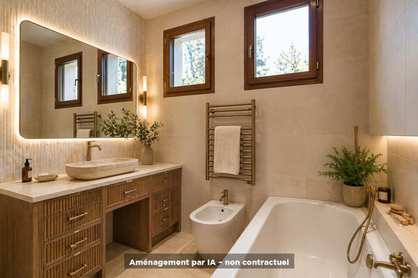 Dès l’étage, la lumière s’impose naturellement et révèle un espace de vie généreux : une entrée accueillante, un salon ouvert sur la cuisine, pensé comme un véritable lieu de partage, deux chambres, une suite parentale, une salle de bain et un WC indépendant. Une atmosphère chaleureuse, où chaque moment du quotidien prend une autre dimension.
